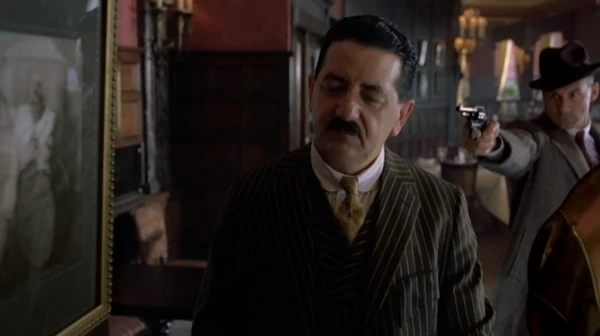 Colosimo and Torrio are welcomed to the Ritz Hotel by the manager. Torrio's driver Al Capone trails behind them and Prohibition Agent Nelson Van Alden watches from across the lobby. Torrio introduces Colosimo to Arnold Rothstein and his associate Charles “Lucky” Luciano.